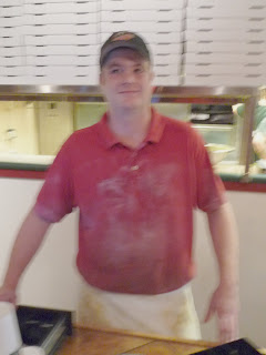 but what shocked me even more was our server. you know the shroud of turin? well he was wearing the polo shirt of lebanon (NH). you be the judge. (my apologies for the photo being blurry, but as you know, religious events often are.)